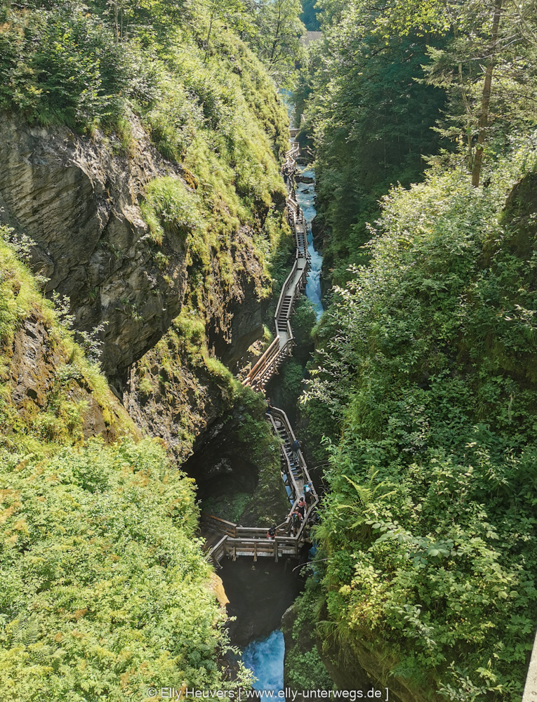 Jedoch kamen die ersten Vorwarnungen meiner Wetterapp rein und wir sahen zu, dass wir zurück zum Auto kamen und nahmen den Weg rechts, welcher auch über die Brücke über die Klamm führt