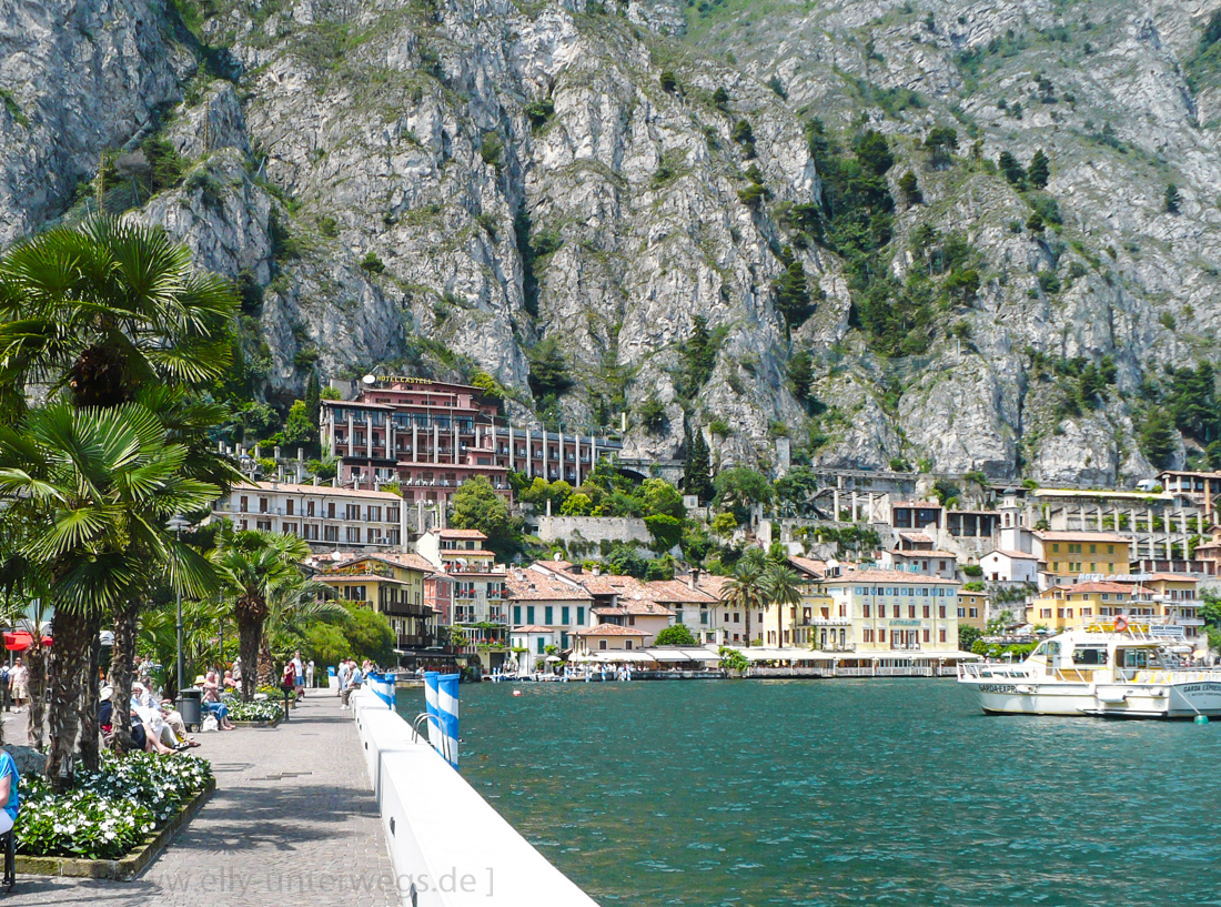 Am Gardasee aufs Schiff und dann nochmal eine Weile damit unterwegs, bis wir am Zielhafen in Tignale waren.