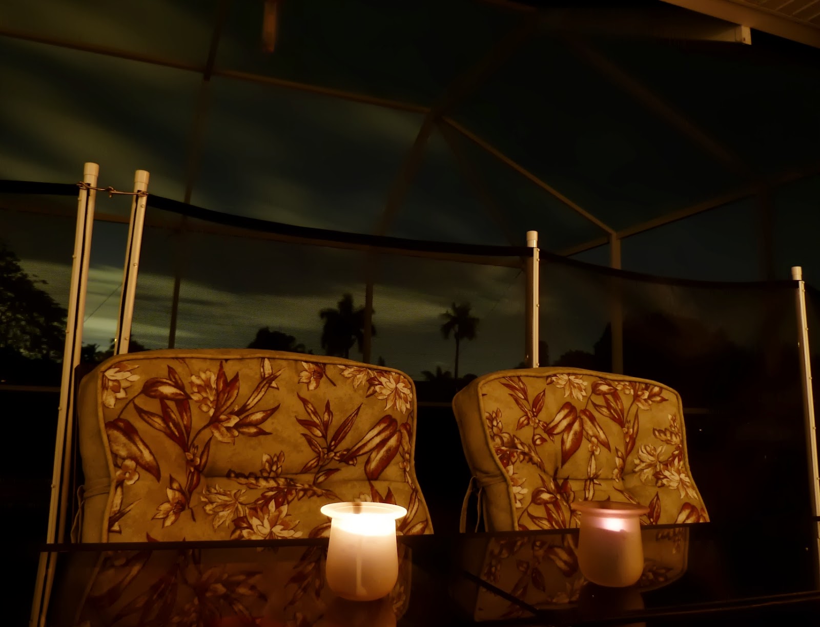 So ein Floridaregenabend kann aber auch ganz interessant sein, Wir machten unser Garagentor auf, holten die Klappstühle und setzten uns in die