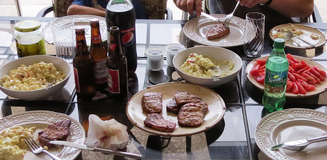 Wir kauften noch ein paar Kleinigkeiten ein und aßen ungewöhnlich spät zu Abend, trotz Regen übrigens auf der Terrasse, da sie überdacht war.