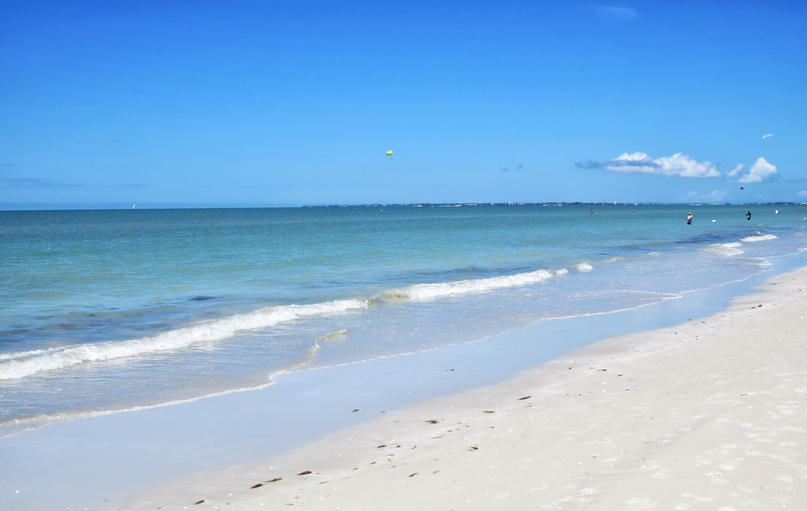 Heidis Bistro liegt gegenüber vom Strand und nach dem Frühstück gingen wir zum selbigen. Der Strand von Fort Myers Beach ist sehr sehr schön, heller, feiner Sand, türkis-blaues Meer, wenig Wellen, wunderbar – hier hätten die anderen mich absetzten und abends wieder einsammeln können.