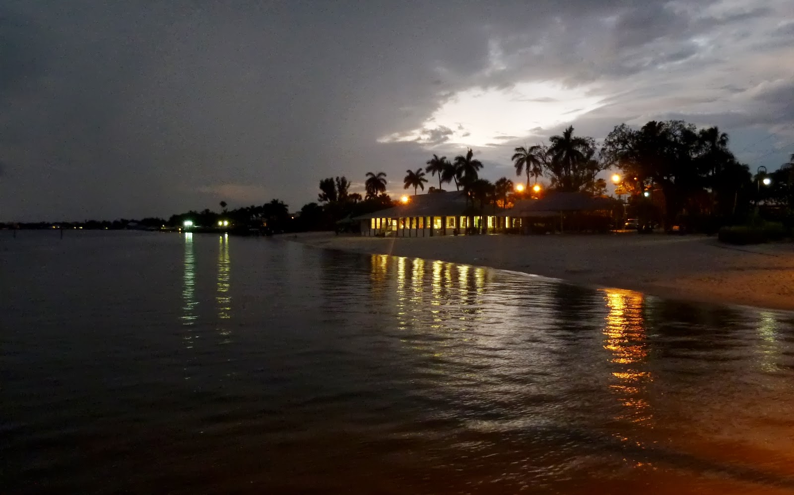 Garage, um uns das Spektakel anzusehen. Das Wasser floss kaum ab und binnen weniger Minuten stand das Wasser auf der Straße. Und was machen Männer, wenn sie große Pfützen sehen? Natürlich ….. ab ins Auto und durchfahren…… da hatte jemand wirklich Spaß, typisch. Später fuhren wir noch zum Strand von Cape Coral, aber die Sonne war schon weg und es fing wieder an zu regnen,….. Also, ein verregnetes Ende eines schönen Tages…. Ob ich wohl noch meinen Sonnenuntergang in Fort Myers am Pier sehen werde…? …..