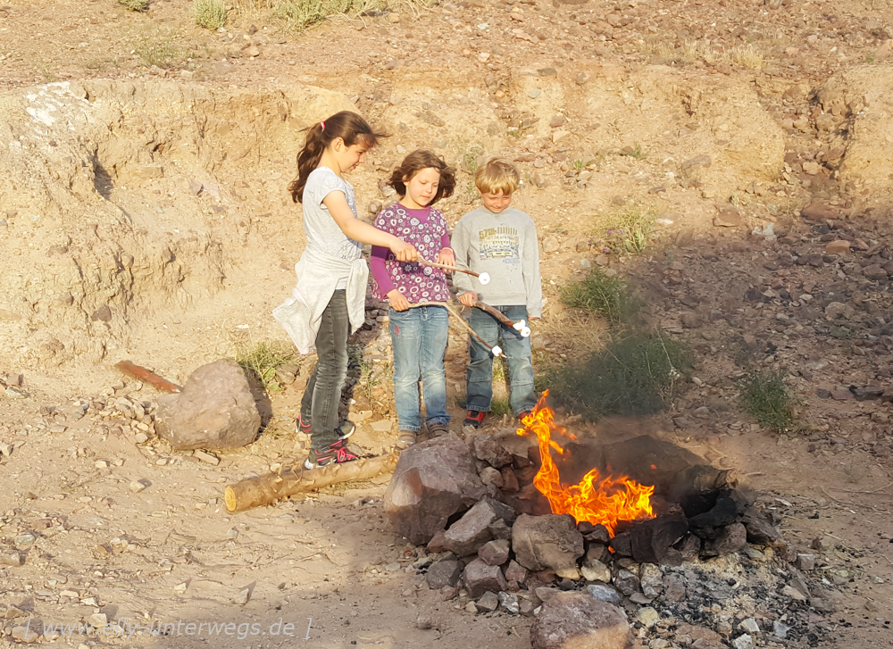 Wir hatten eine Feuerstelle direkt am Wohnmobil und die Kinder wünschten sich endlich mal ein Lagerfeuer mit Marshmallows grillen