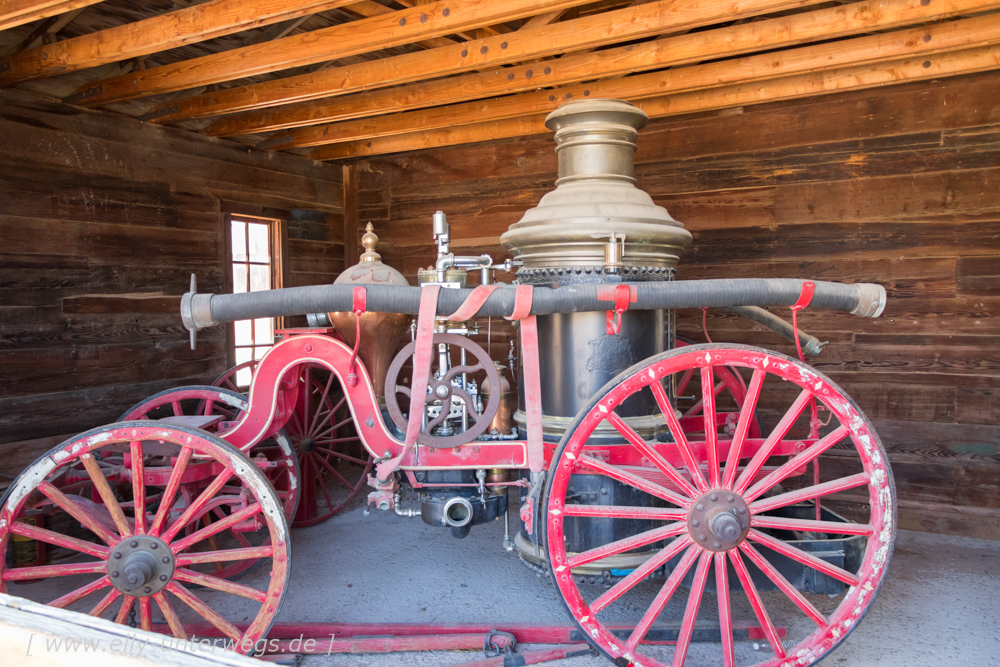 Rechts im Bild: Die Löschstation – ein großer Bottich mit Wasser und viele Eimer. Leider habe ich Foto aus der Nähe, die Kinder drängelten, dass wir endlich nach Las Vegas fahren!!!!