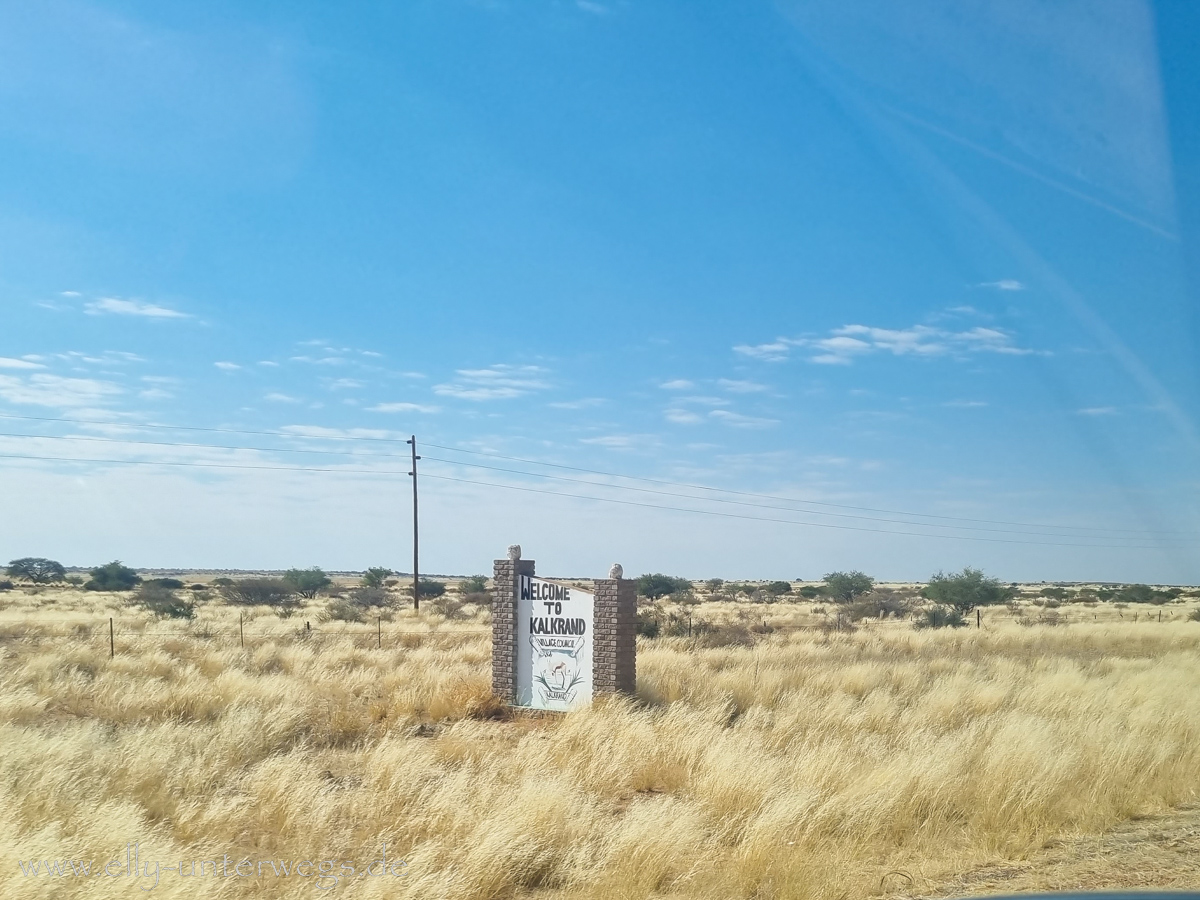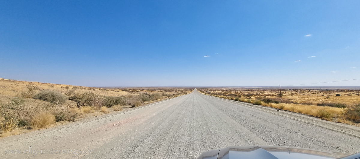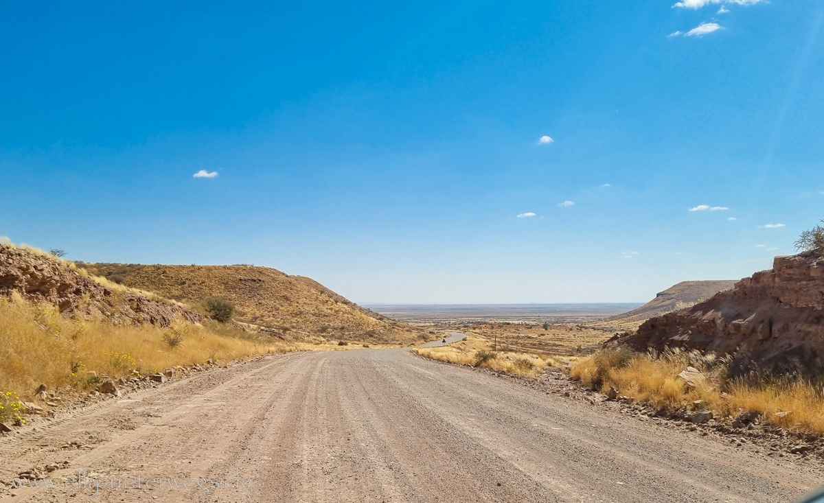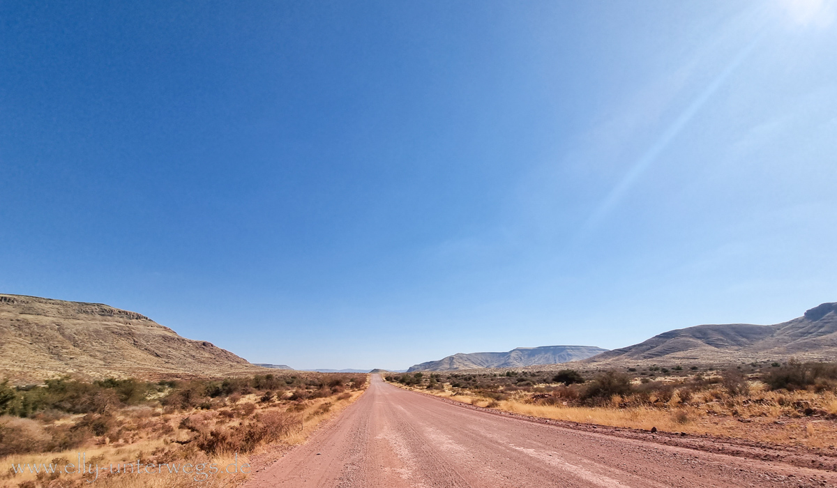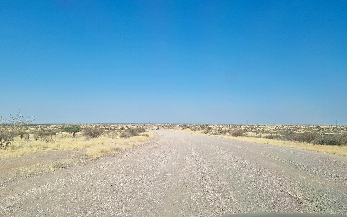 In Kalkrand bogen wir rechts ab – und hatten eine langweilige, eintönige Schotterpistenstrecke vor uns.