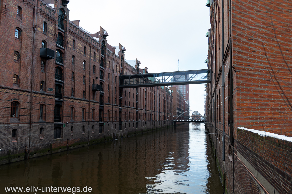 Direkt in der Speicherstadt konnte ich parken, zahlte etwas zähneknirschend die horrende Parkgebühr für meine zuvor veranschlagten 2 Stunden (3,50 pro Stunde = 7 Euro) und startete meinen Spaziergang durch die winterliche Speicherstadt zur Elbphilharmonie.