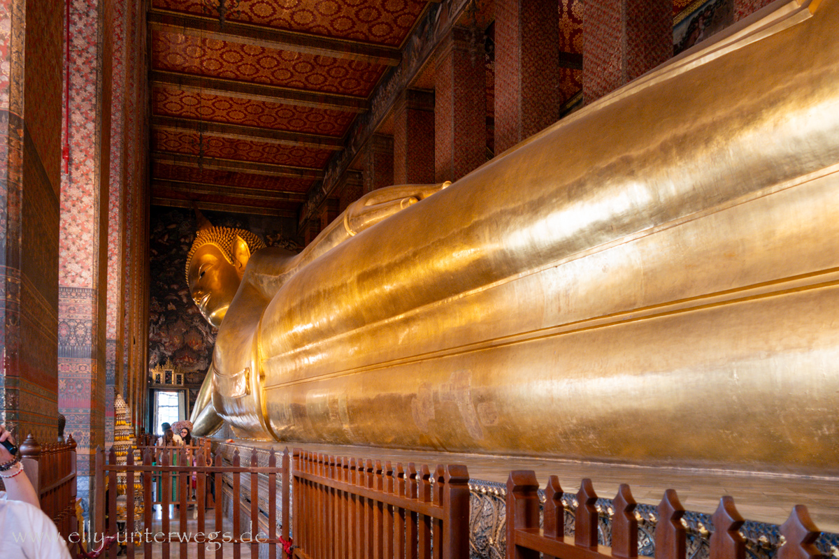 Unser erster Stopp war der Tempel mit dem großen, liegenden Buddha