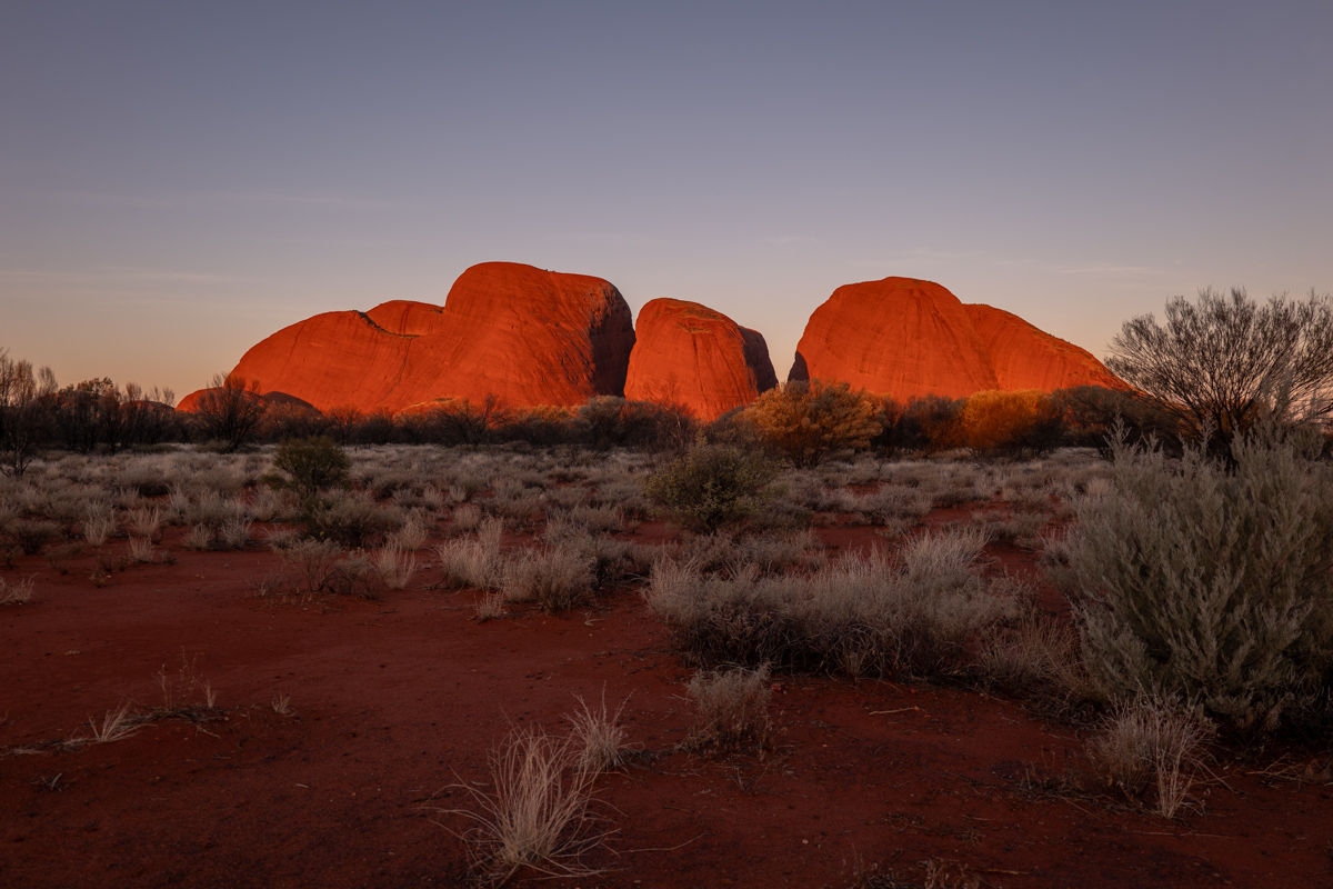 Der Vorabend fühlte sich an wie ein Moment außerhalb der Zeit. Wir standen am Sunset-Viewing-Area und sahen die letzten Sonnenstrahlen des Tages, welche den Uluru orange leuchten ließen.