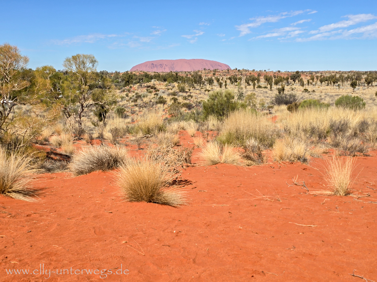 Und ich genoss es sitzend auf einer Bank. Den Blick auf den Uluru. Tief durchatmend versuchte ich, diesen Moment zu genießen und tief in mein Gedächtnis zu verankern.