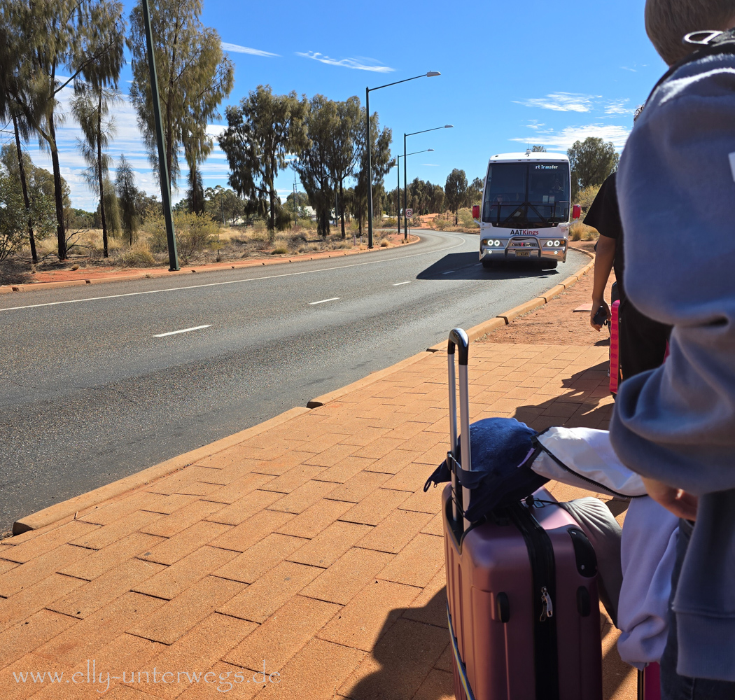 Der Bus kam pünktlich und brachte uns in wenigen Minuten zum Connellan Airport.