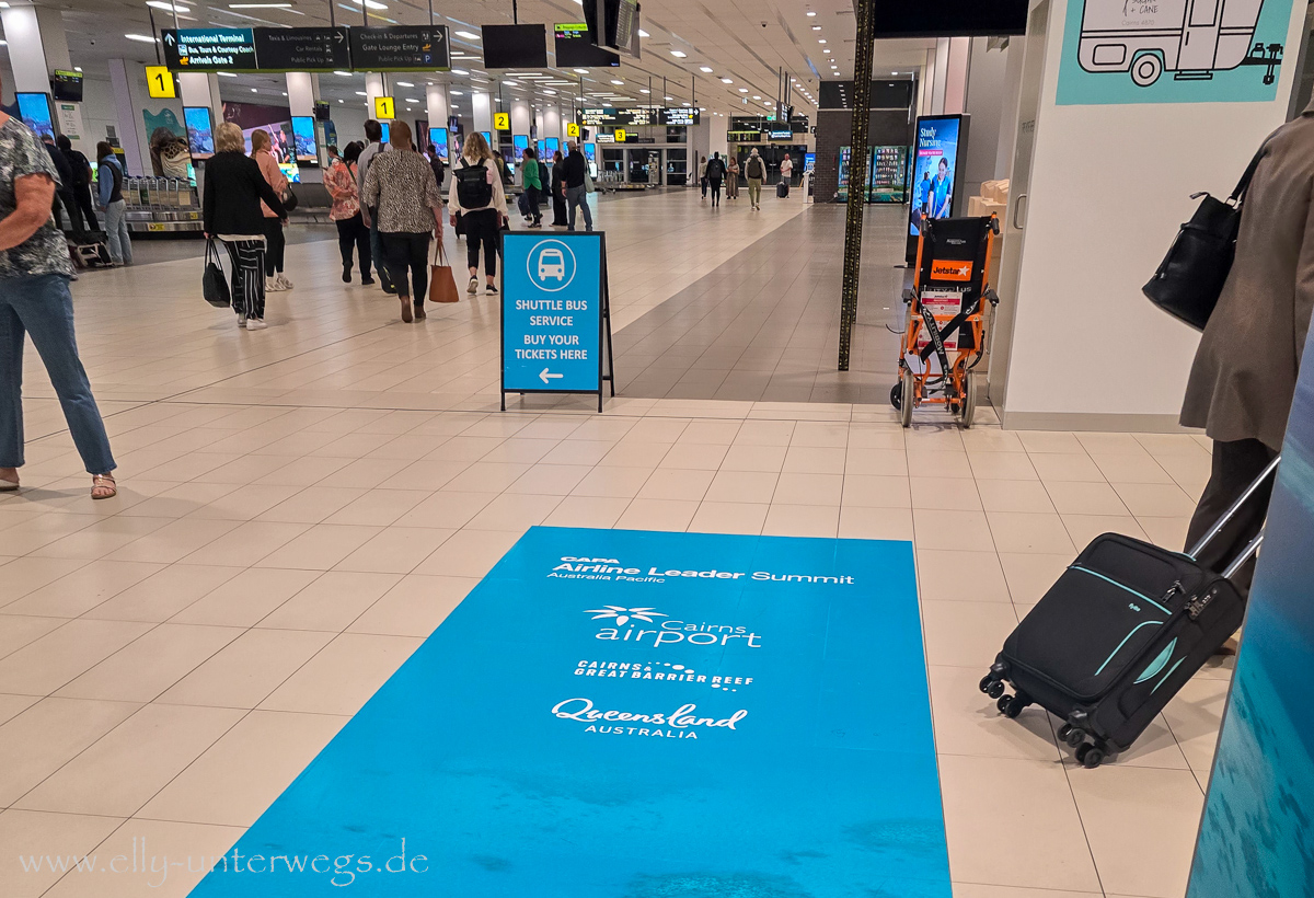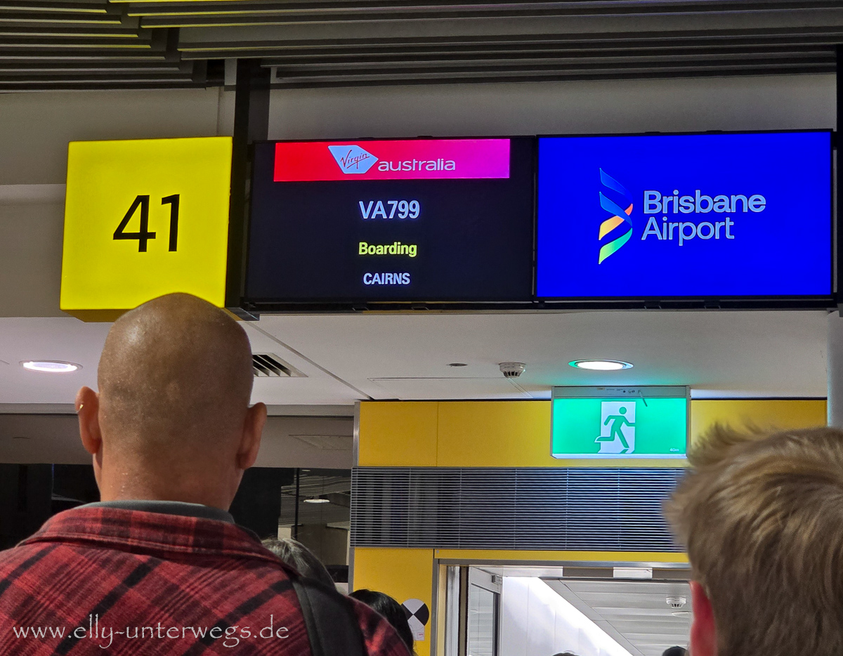 Der Anschlussflug nach Cairns wurde bald aufgerufen. Australien ist riesig, das merkt man, wenn man fast den ganzen Tag unterwegs ist und trotzdem immer noch im selben Land bleibt.