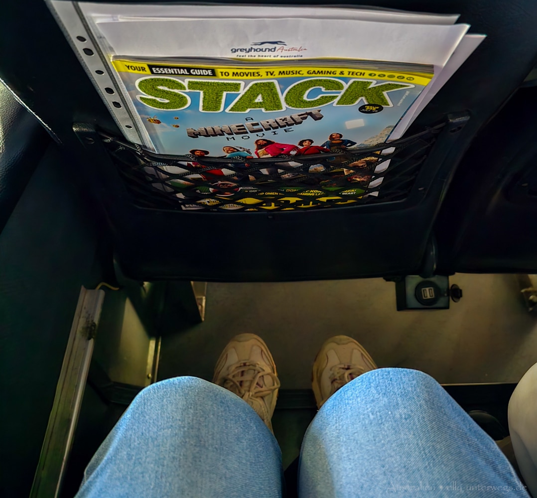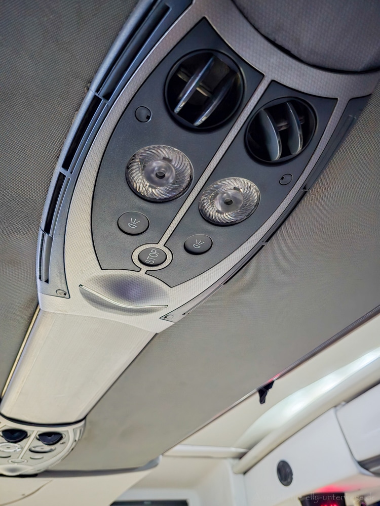 Nach dem Einsteigen richteten wir uns erst einmal auf unserem Platz ein. Nackenhörnchen, eine kleine Reisedecke. Ein paar Snacks im Netz am Vordersitz. Die Sitze waren bequem, auch auf längeren Strecken. An jedem Platz gab es einen USB-Anschluss, was unterwegs wirklich hilfreich war, allerdings brauchten wir dafür etwas längere Kabel. In vielen Bussen funktionierte auch das WLAN, mal stabiler, mal weniger, aber für Nachrichten und kurze Recherchen ausreichend. Nur zum Streamen war es manchmal zu langsam.